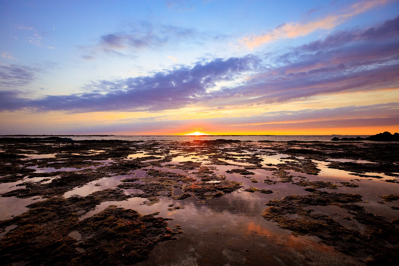 ちょうど干潮と夕暮れが重なった奇跡のタイミング。息を呑むほどの風景が目の前に広がりました。