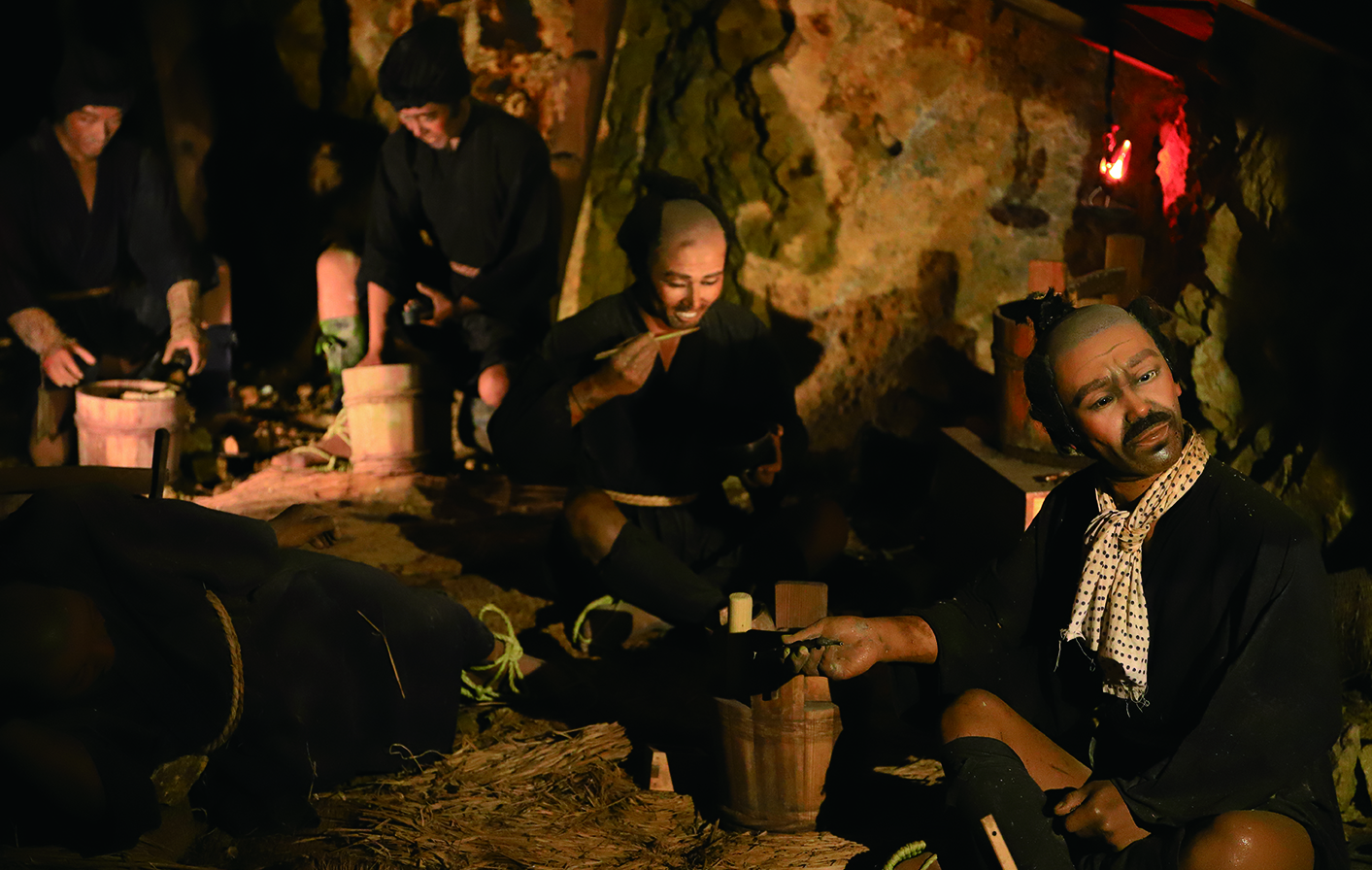 江戸時代の坑夫たちはタガネで一日わずか数十センチしか掘れなかったそうです。