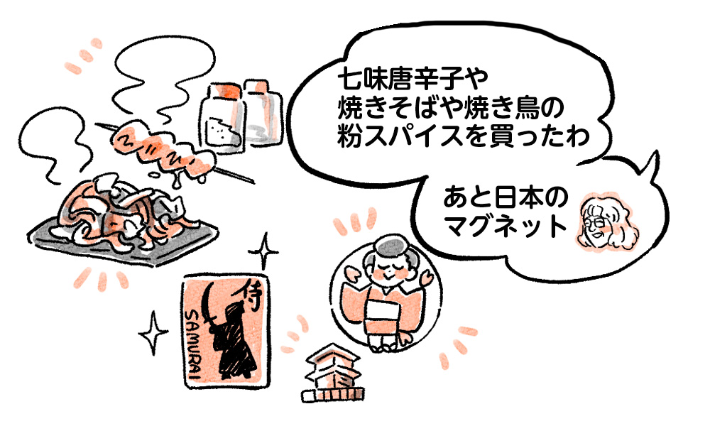 「他にも、芸者やサムライ、テンプル(お寺)、着物や浴衣をモチーフにしたマグネットも選んだね」