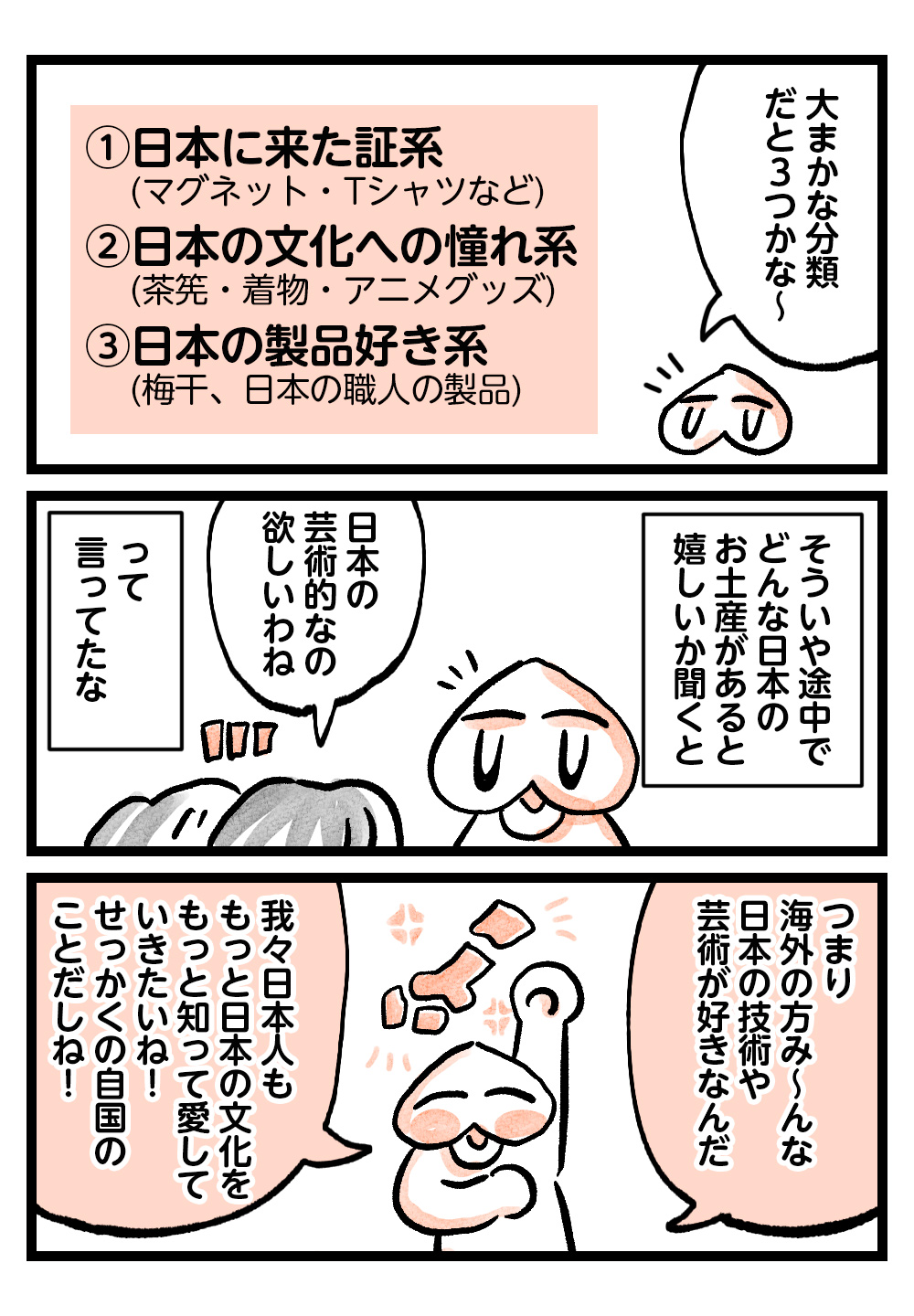 まだ日本にしばらくいるみたいですが、どういうお土産を買う予定か聞いてみると、