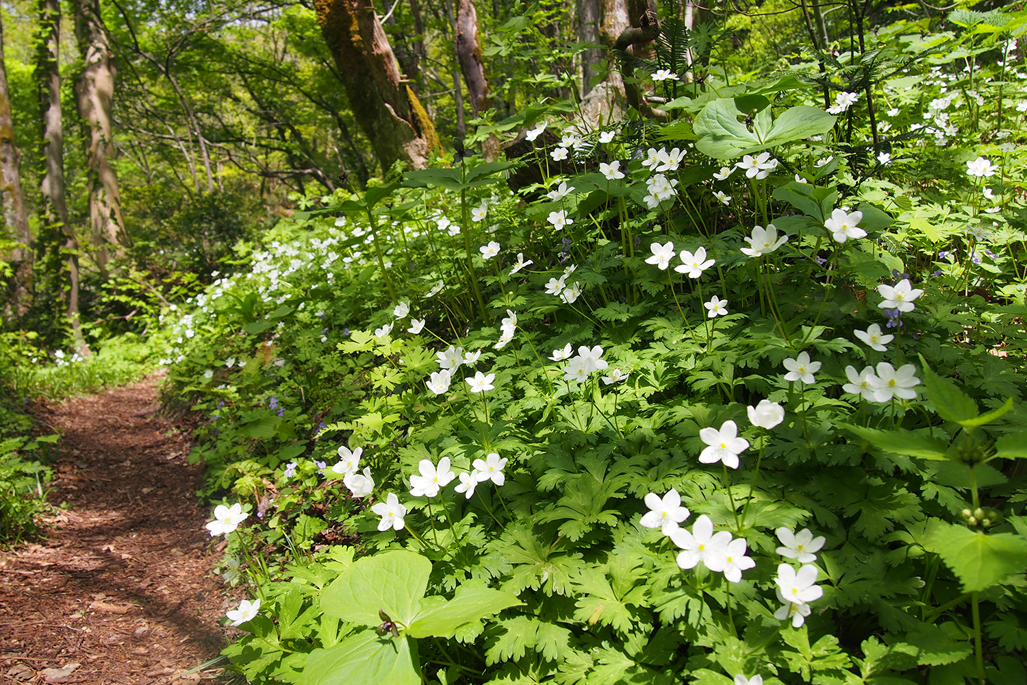 カタクリ、シラネアオイ、ニリンソウ、フクジュソウ、ユキワリソウそしてトビシマカンゾウ。季節の移ろいとともに、さまざまな高原植物の群生に出会えるのもこのエリアならではの魅力です。
