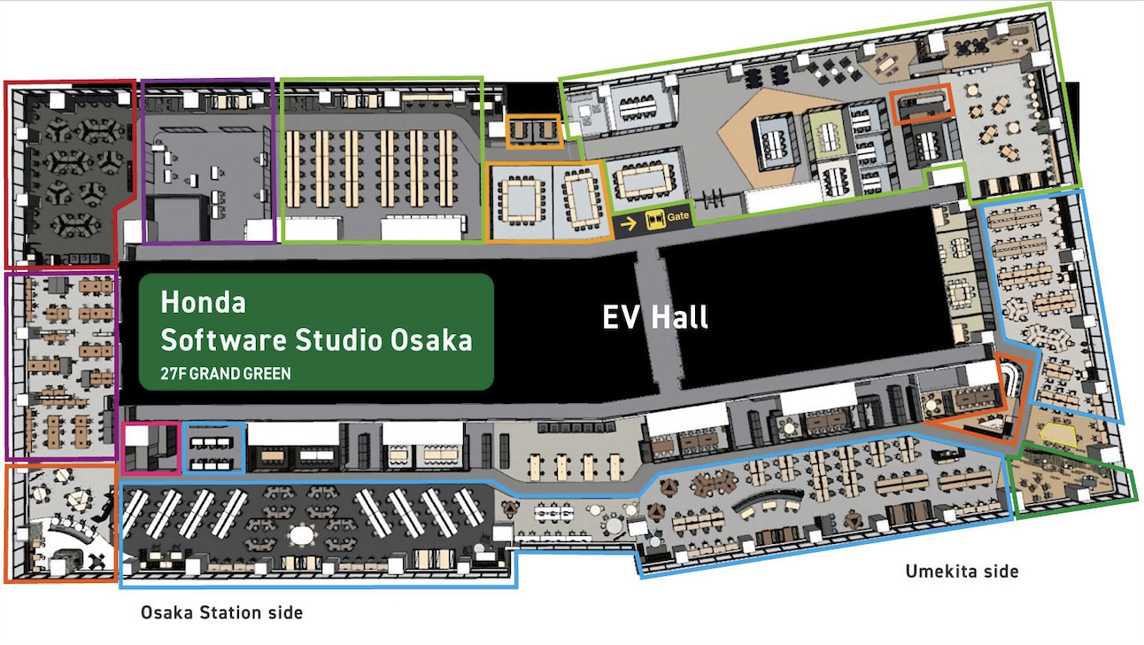 そんなHondaは現在、関西地区での「ソフトウェアエンジニア」の採用を強化中です。2023年秋、それまで関東を中心に展開してきたソフトウェア開発部門を「WeWork LINKS UMEDA」に拡大。そして、2025年春、その開発拠点を発展させ「グラングリーン大阪南館」の27階に新たな拠点を開設しました。今年6月には、関西のソフトウェア人材を500人に増やすという計画を発表しています。