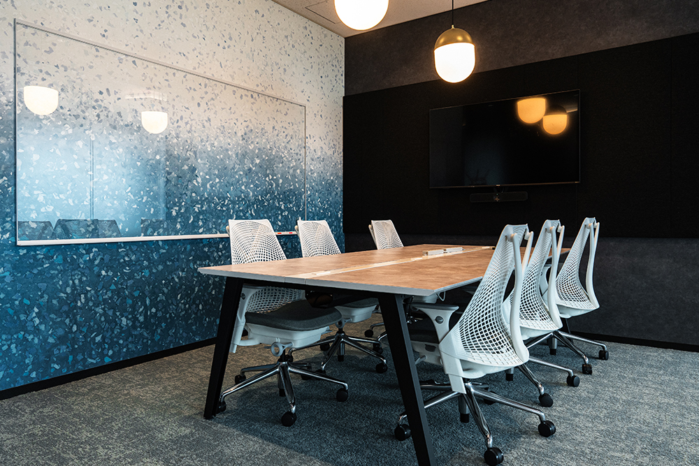 エントランス内には、複数の会議室を完備。それぞれコンセプトが異なるといいます。