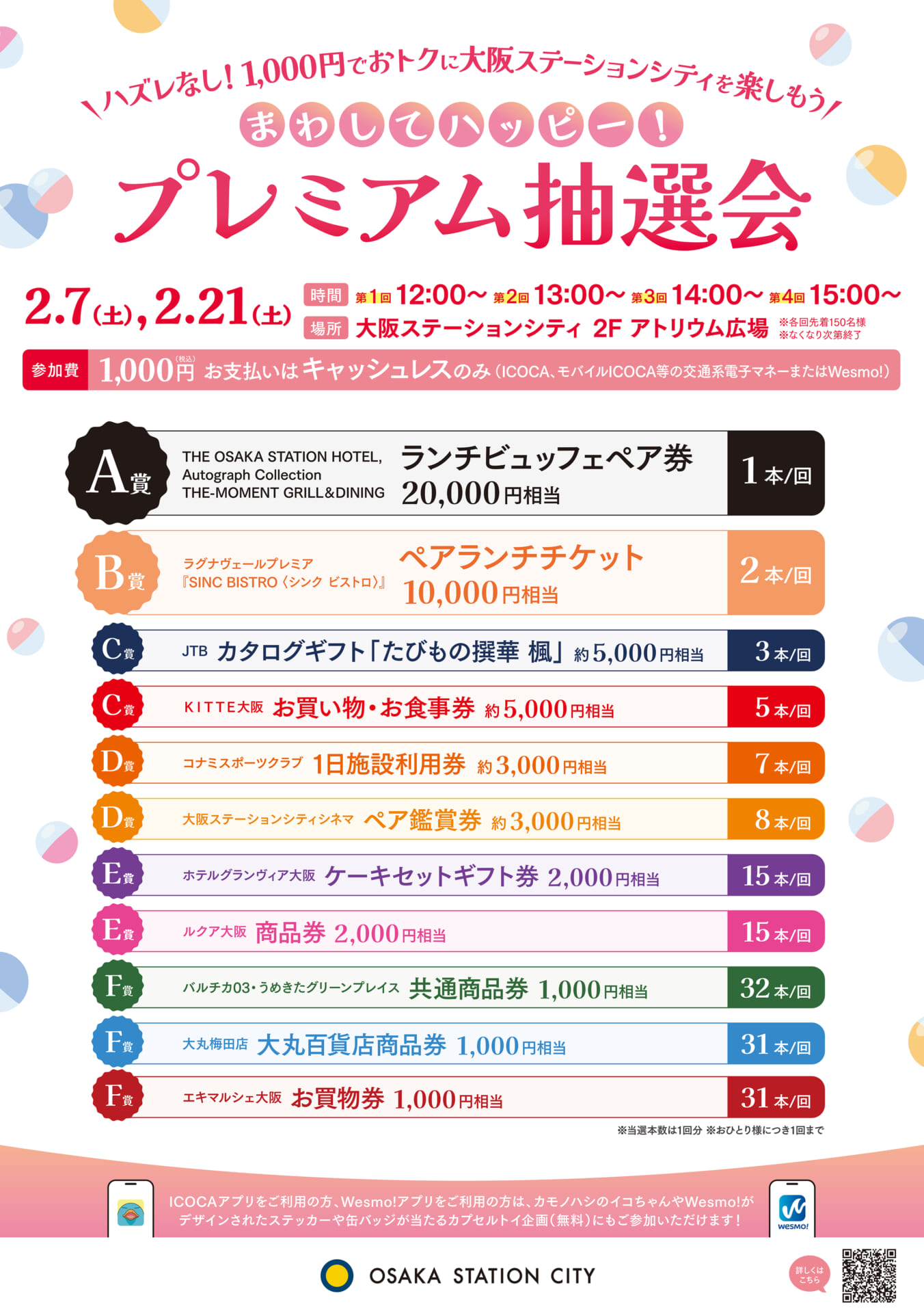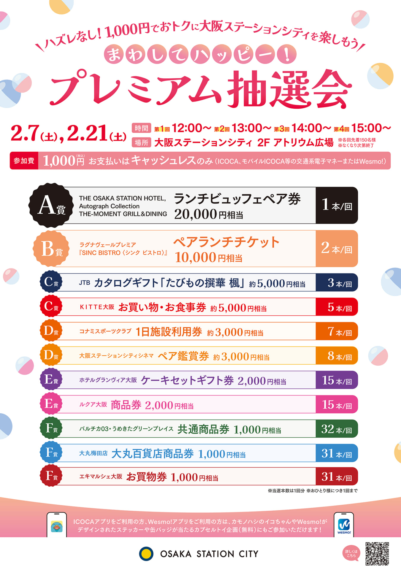 参加費1,000円で“ハズレなし”の大阪ステーションシティ内で利用できる豪華商品券やお食事券等が当たるビックチャンス!