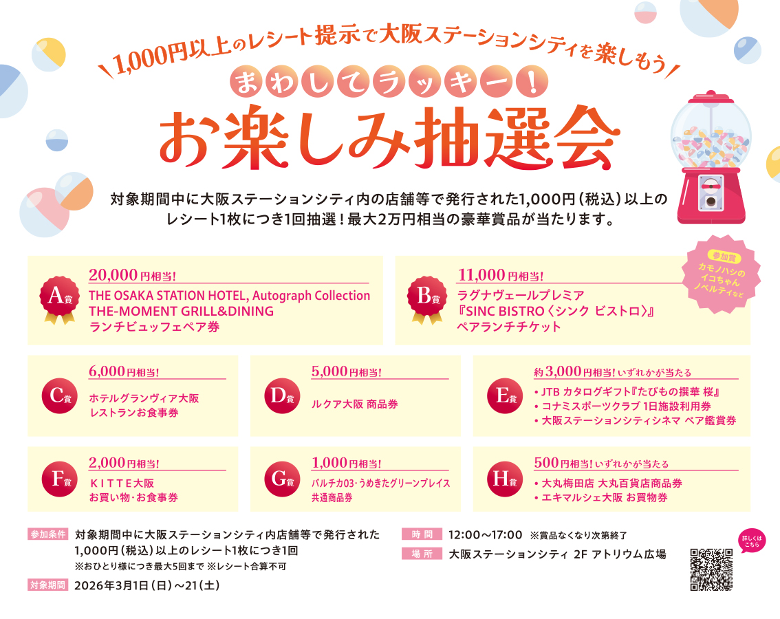1,000円以上のレシート提示で大阪ステーションシティを楽しもう! 「まわしてラッキー!お楽しみ抽選会」開催!!