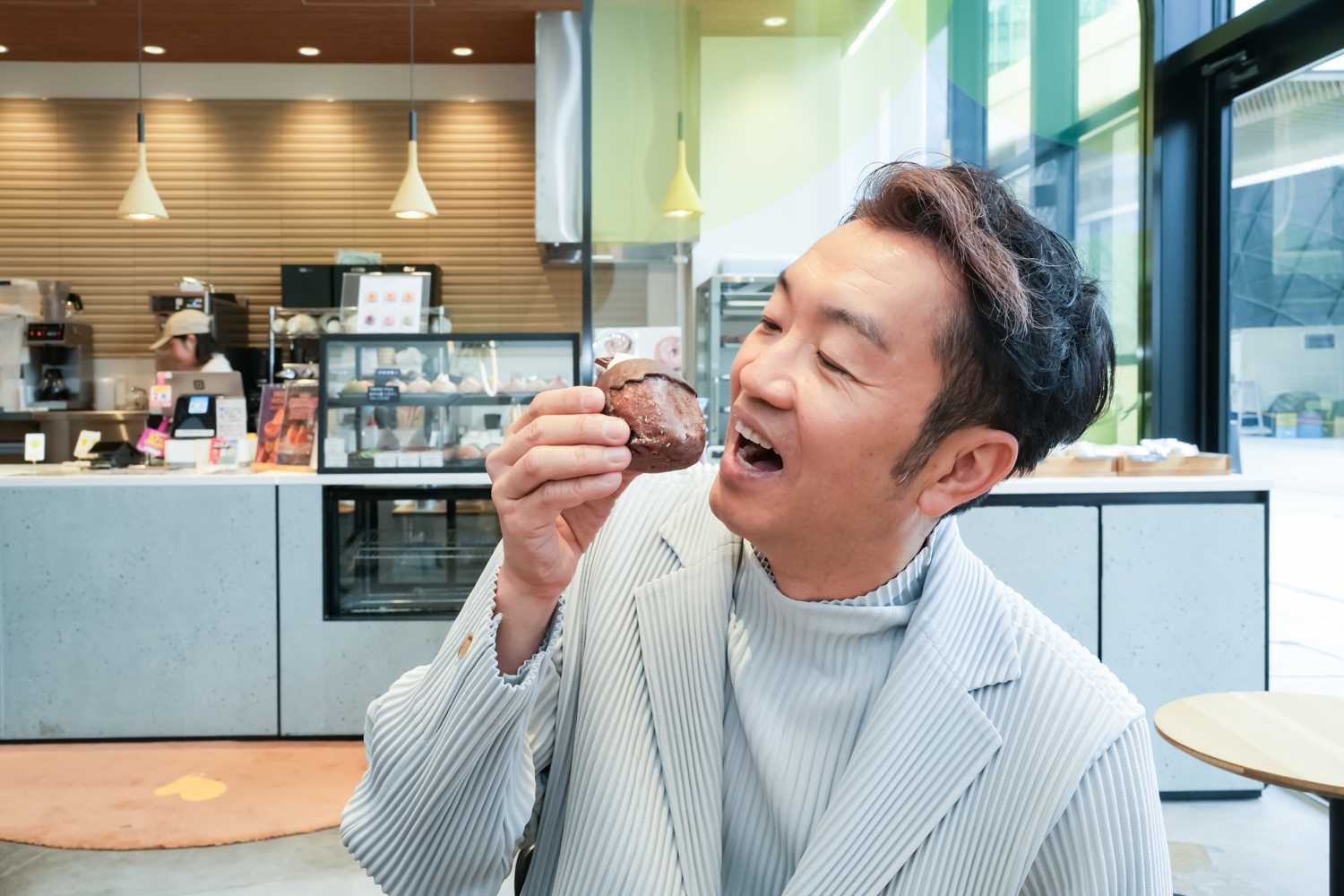 思った以上にふわふわで驚きました!上にかかったチョコレートコーティングのパリっとした食感と、ドーナツとクリームの柔らかい食感の違いが楽しめて美味しかったです!