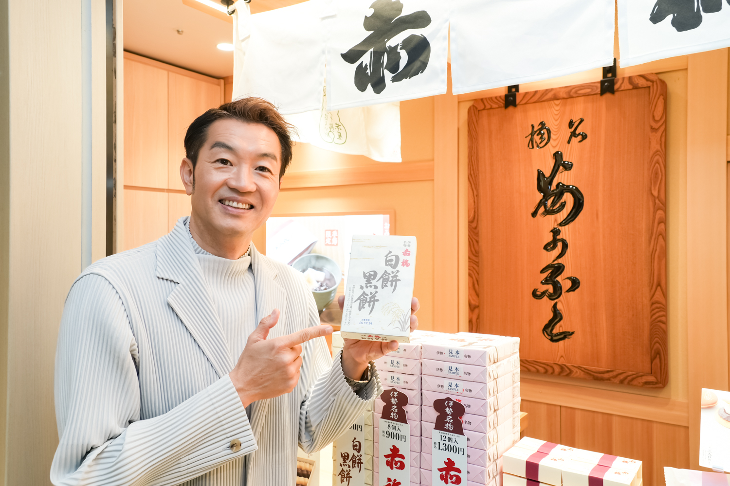 白小豆の白餡と黒砂糖味の黒餡が味わえる「白餅黒餅」(1,100円/8個入り)をご紹介いただきました!通常の「赤福」とは異なるお味のお餅を2種類楽しめます。通常の「赤福」よりも入荷数が少ないので、売り切れることもあるそうです。