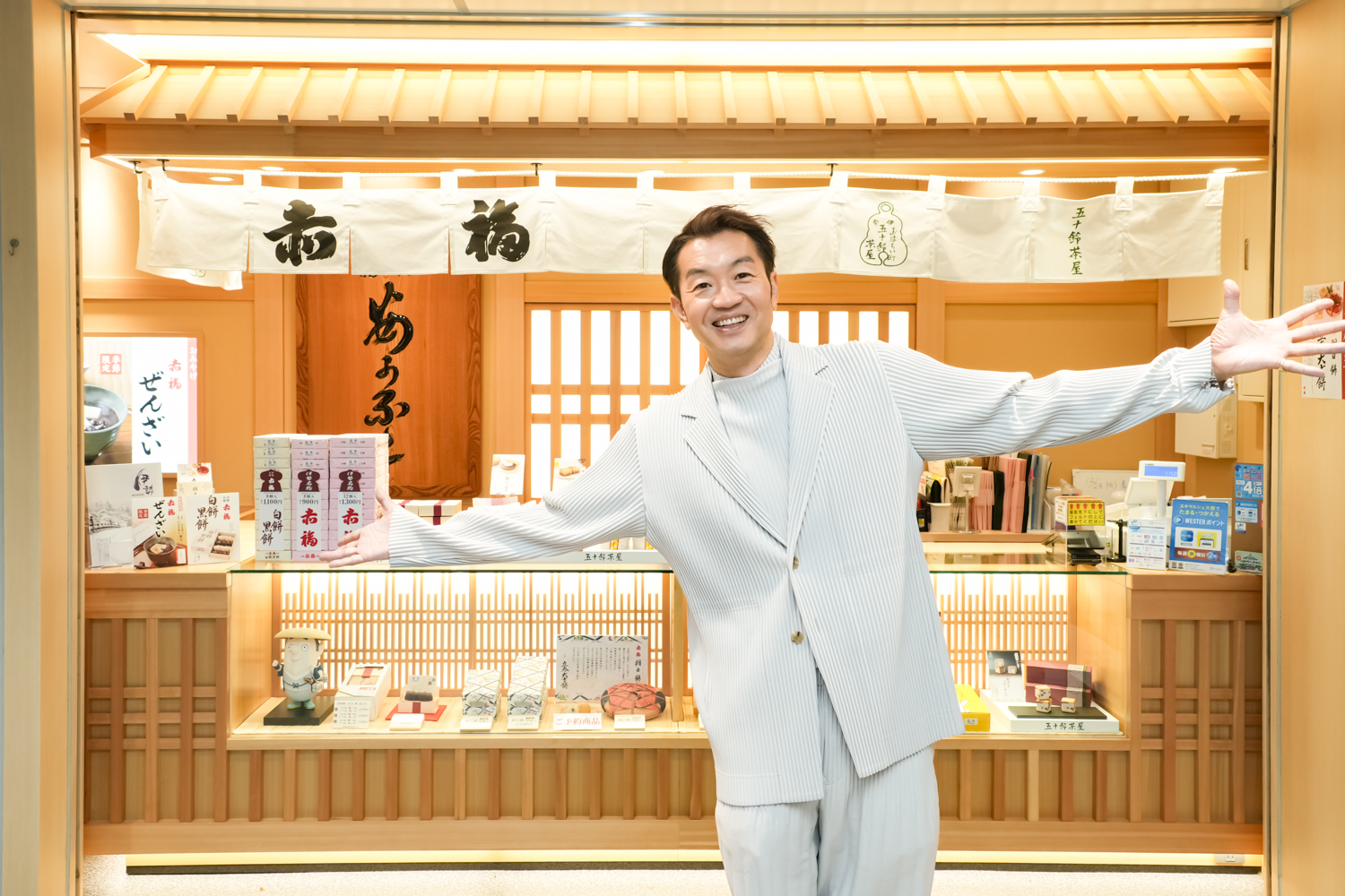宝永4年(1707年)創業、伊勢名物「赤福」の直営店です。定番の赤福餅や、上品な白餡と素朴な黒砂糖味の黒餡を楽しめる「白餅黑餅」、毎月1日限定(1月を除く)の月替わり商品である「朔日餅」のほか、赤福が手がける和洋菓子ブランド「五十鈴茶屋」の商品もラインナップ。