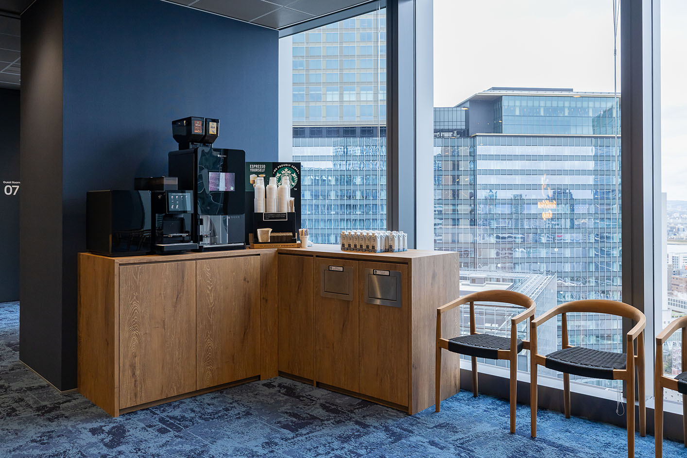 「私たちの仕事の多くは企業間取引や法人様向けですが、各種セミナーや発表にお越しになる皆様にとっても、気軽に立ち寄っていただける“お店”のようでありたい。そう考えながら空間づくりに励みました。」とコーポレートコミュニケーション室の石田室長。