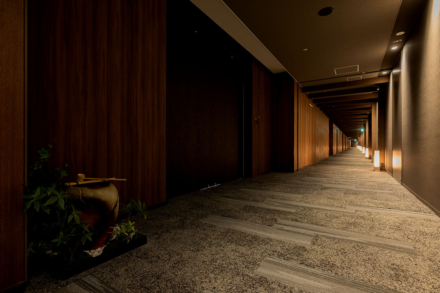 その後の廊下もその世界観を損なうことなく和のテイストは続き、レセプション(受付)へと誘います。
