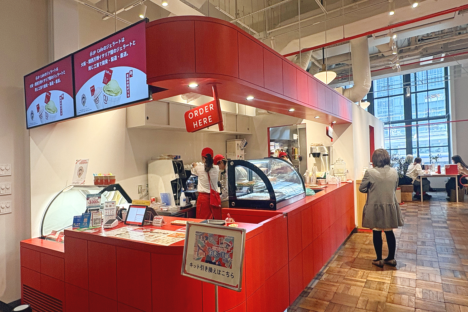 「@JP Cafe」は郵便局跡地のKITTE大阪にあるカフェ。日本全国の地域の魅力を発信していて、ちょっとした旅気分を味わえるのが楽しい空間です。