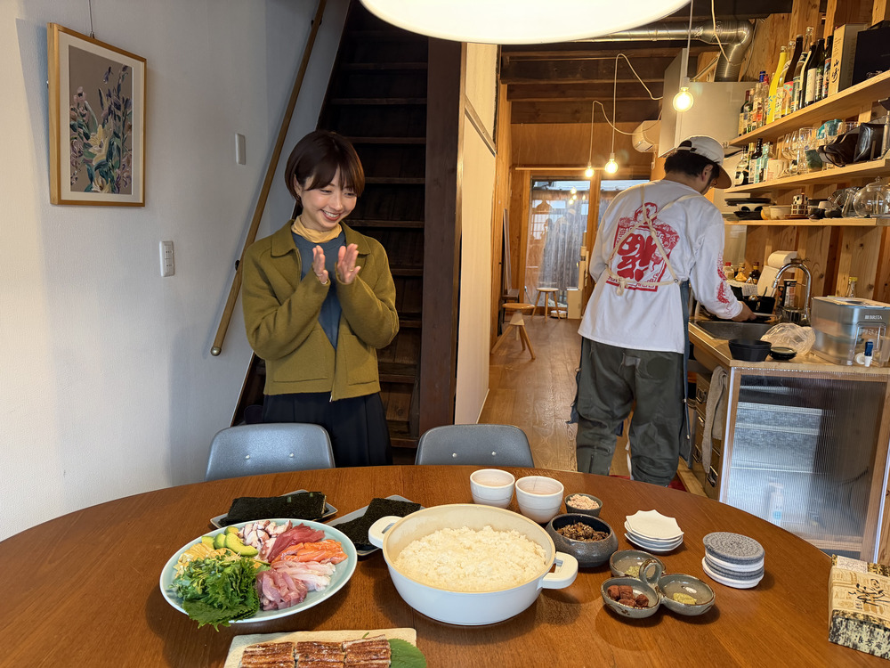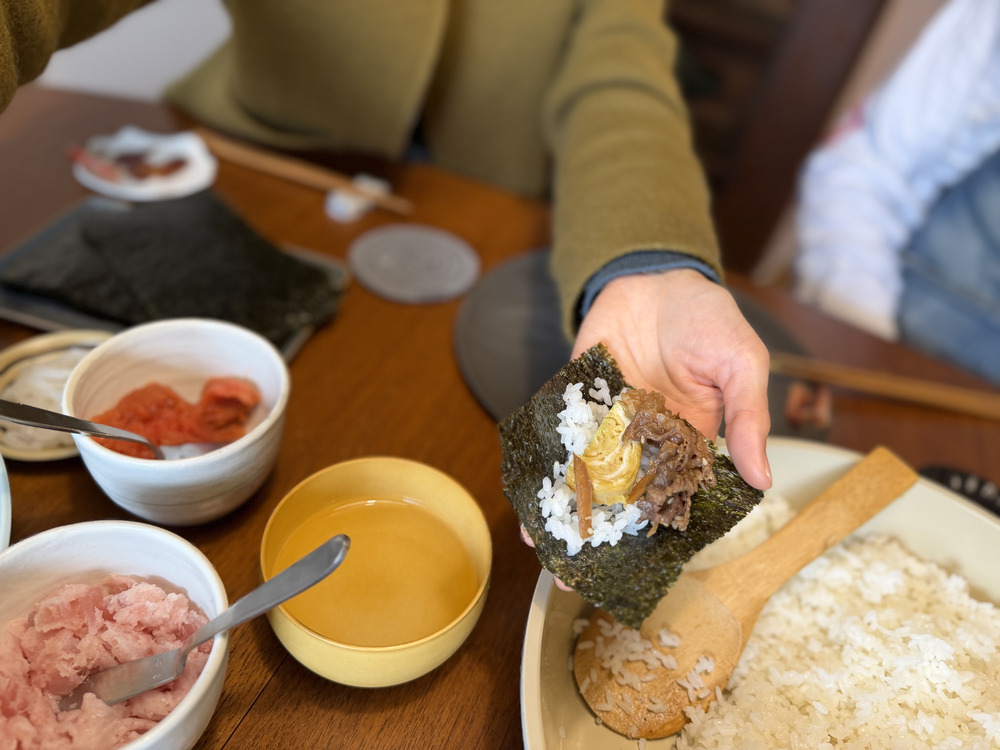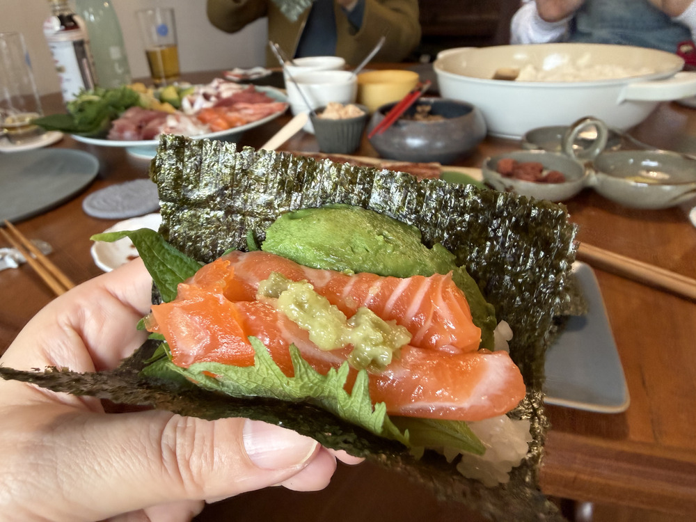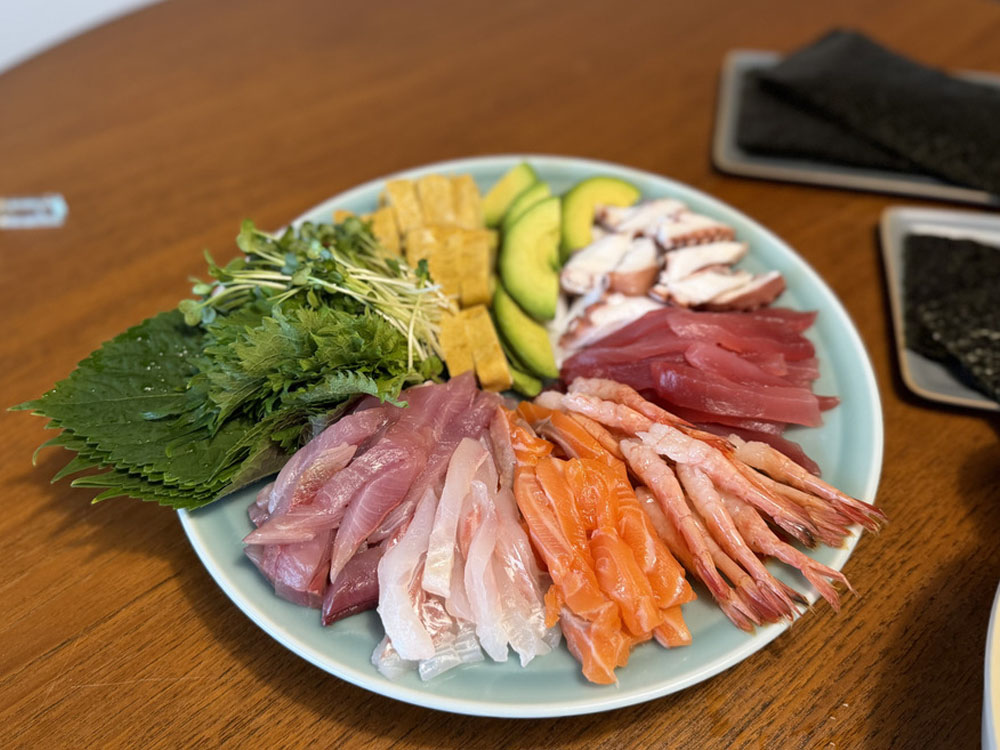 バラエティー豊かな高津家の手巻き寿司。おいしい組み合わせを見つけては「イカめんたいが最高だよ」「うなぎバターがギルティ〜! 」と教え合いっこして盛り上がりました。