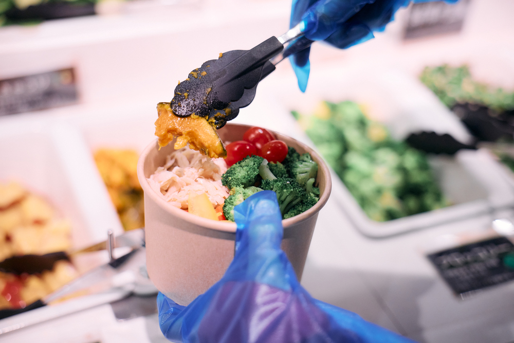 サラダバーは詰め放題で540円(税込)。チキンや豆類、厚揚げなんかも選べて、タンパク質もバッチリ。いろんな野菜を買うより、めっちゃお得!