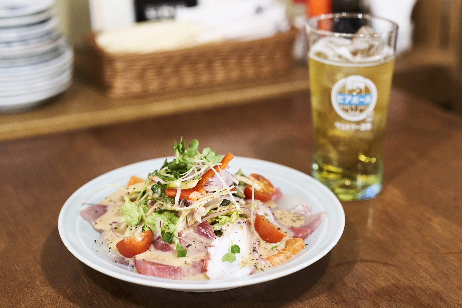 料理番長のつよしさんは、元はイタリアンのシェフだそう。気軽な立ち飲み店という雰囲気からは予想外?に、料理にも強いこだわりが。お酒を楽しむにはアテも大事! リピーターさんが多いというのも納得です。