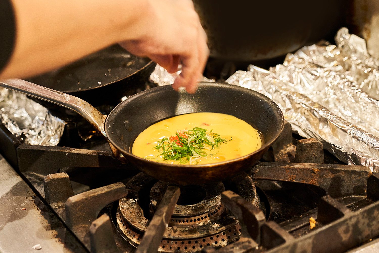 お刺し身と並ぶもうひとつの名物が、京橋玉子焼。お客様の2人に1人は注文するのだとか。私も大好きなメニューのひとつです。