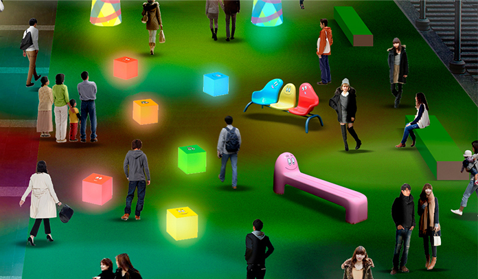賑やかなだけじゃない、多様性を大事にする世界観だからこそ色んなクリスマスの楽しみ方をご提供。バーバパパファミリーの光る椅子でゆっくり座って空間全体を見渡したり、おしゃべりを楽しんだりできる休憩空間。