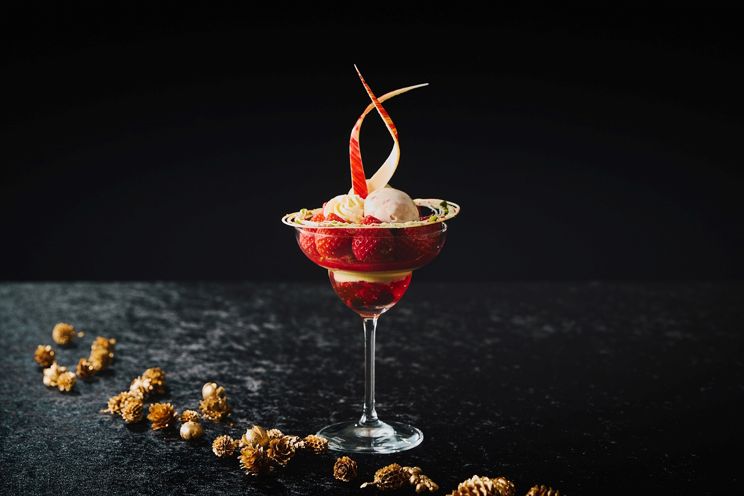 主役のフルーツは、赤くきらめく果実、みずみずしい果汁で、昨年多くの方を魅了したいちご。エグゼクティブペストリーシェフ 吉田修が率いるペストリーチームが、繊細な感性と確かな技で、フェスティブシーズンにふさわしい優美なスイーツをお届けします。